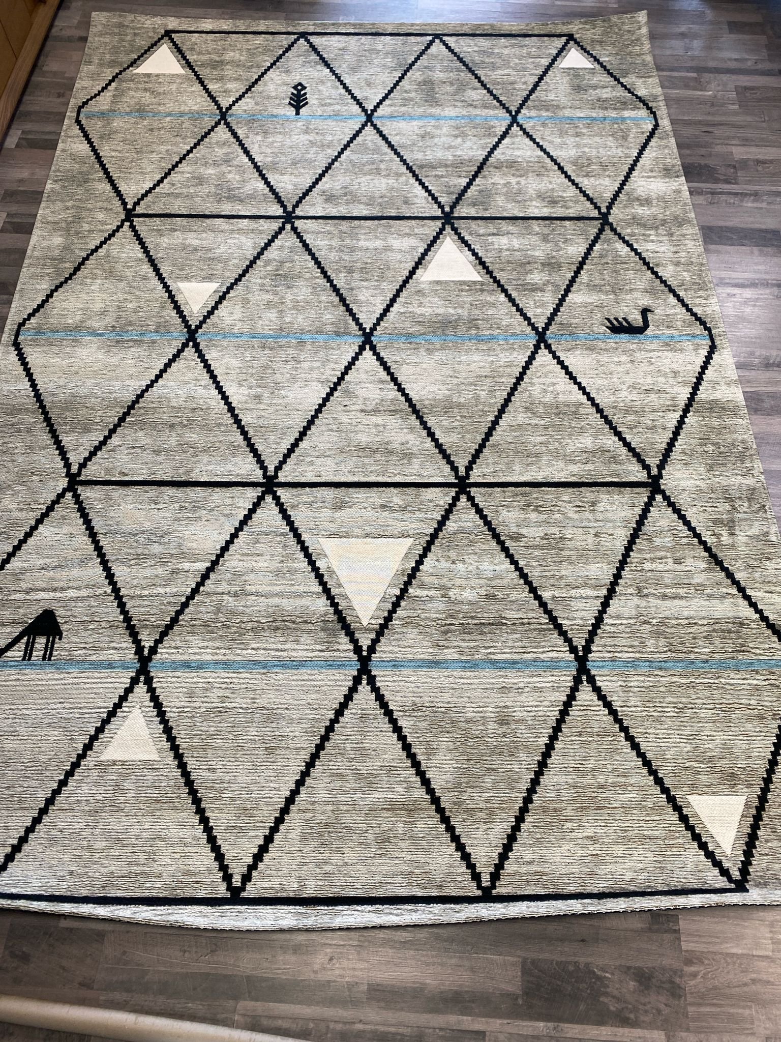 Il tappeto Gava di Calligaris si distingue per il suo design stravagante, realizzato con tessitura jacquard e filati misti di ciniglia e cotone lavorati a felpa. Disponibile in una tonalità unica con una base grigio chiaro e decori neri e azzurri, questo tappeto possiede le seguenti dimensioni: 200×300 cm. I suoi soggetti zoomorfi, caratterizzati da piccole icone dai tratti primitivi e simbolici, vengono reinterpretati in nuovi paesaggi immaginari. Profili di monti innevati, paludi e fiumi si inseriscono in una griglia geometrica a losanghe, dando al tappeto un’impronta incredibilmente contemporanea. Gava si esprime al meglio in ambienti con arredamenti dalle finiture chiare, aggiungendo un tocco moderno.